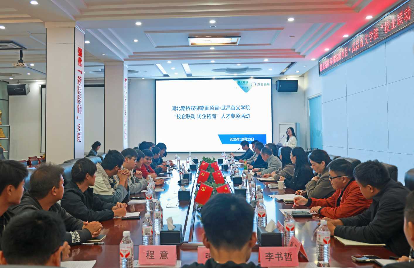 为深化产教融合、推动校企协同育人,10月23日下午,澳门博彩官网下载双柳长江大桥路面项目部联合武昌首义学院开展“校企联动 访企拓岗”人才专项活动,与武昌首义学院校企合作处处长、教务处副处长周自伦等座谈交流。