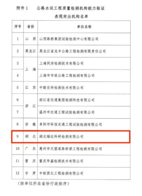 1月9日,中国交通建设监理协会发布表彰通知,联投下载澳门赌博官网瑞达科研检测公司成功蝉联第二届公路水运工程质量检测能力验证“表现突出机构”荣誉。成为全省唯一一家连续两届获此荣誉的检测机构。